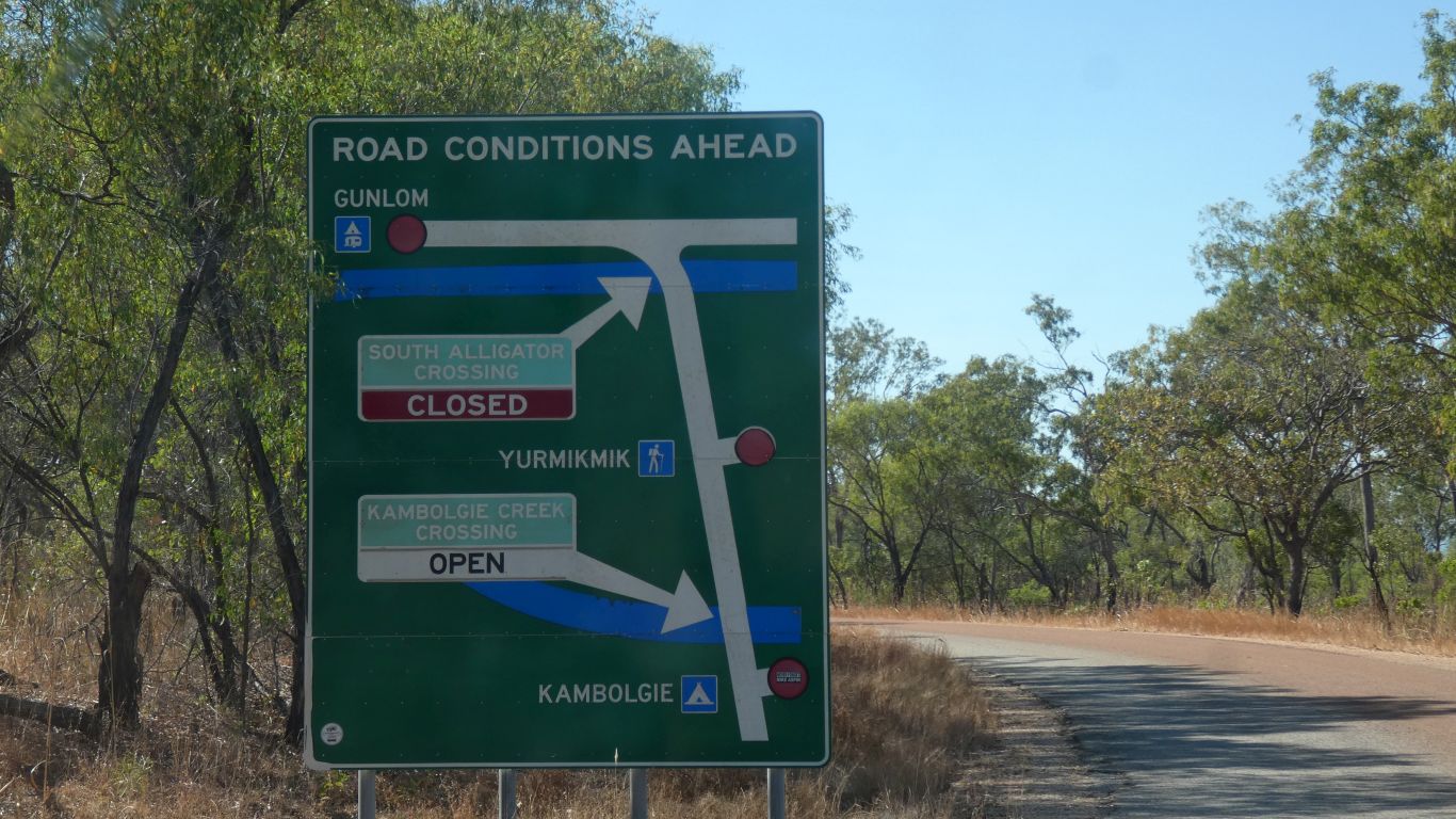 Gunlom is closed. An argument over some stairs and sacred site. We have seen a mixture of comments on whether the bottom of the falls may be open, and whether the caravan park at the bottom may be open. Beyond this sign is a locked gate. |