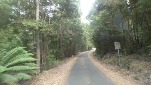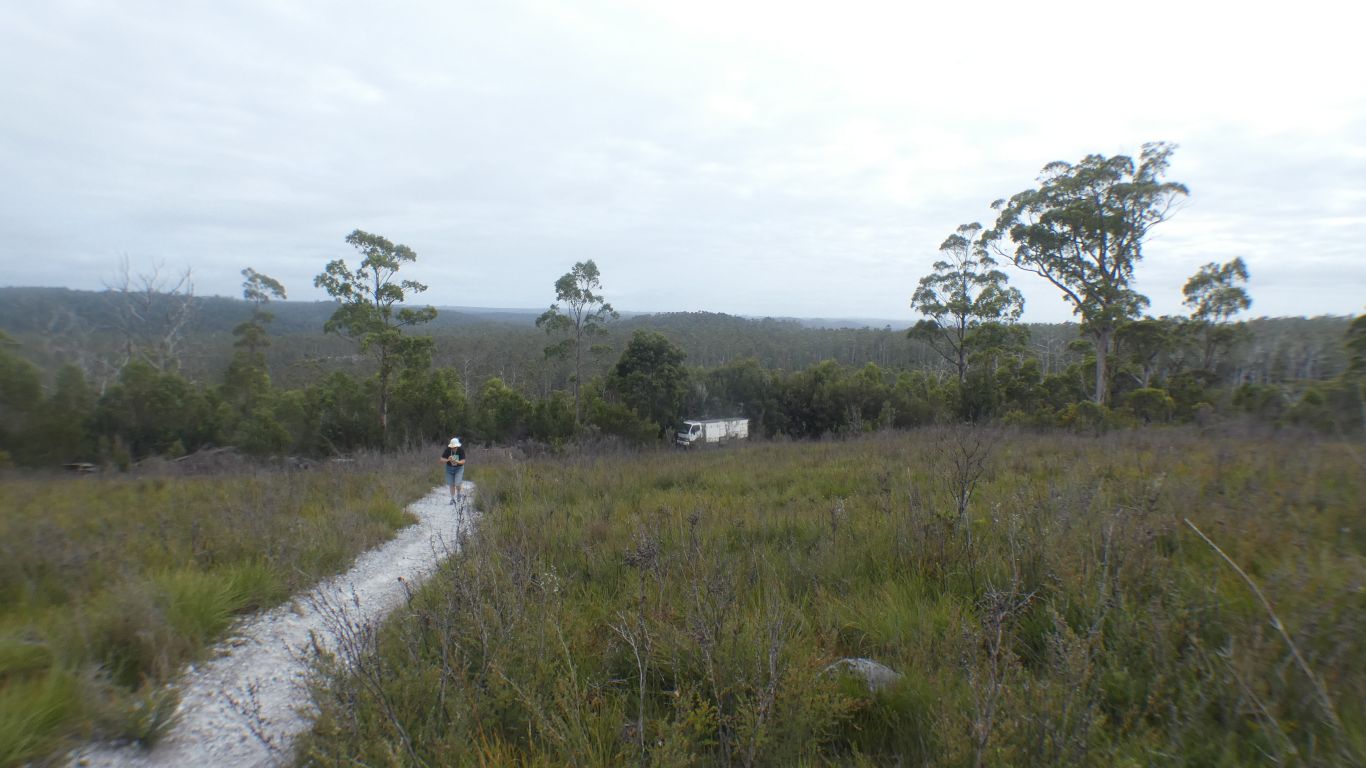 We continue clockwise on our tour. Through regrowth forest in various stages, sometimes fire damaged. |