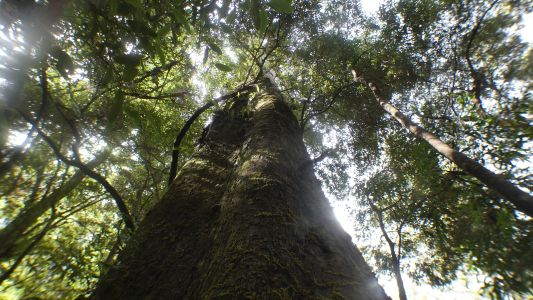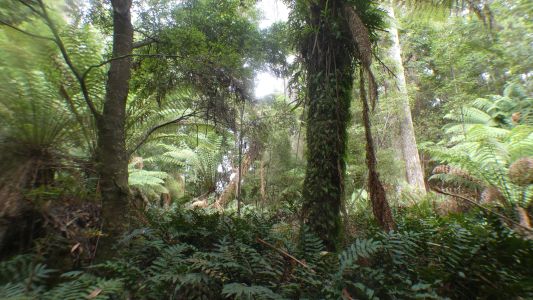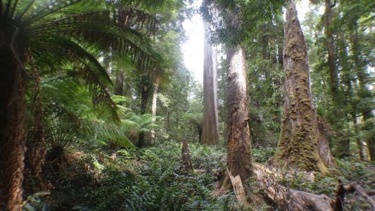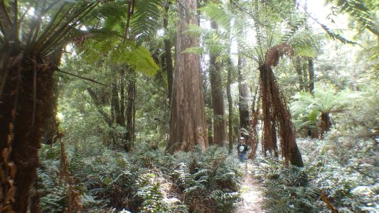 River. There is a description of the tall gum trees, which are susceptible to, and require, fire, with lower down, nearer the river, rainforest species myrtle beech and sassafras which don't. Given time the rainforest will overtake the eucalypts. Unless there is a fire. Blackwoods have a foot in both camps. |