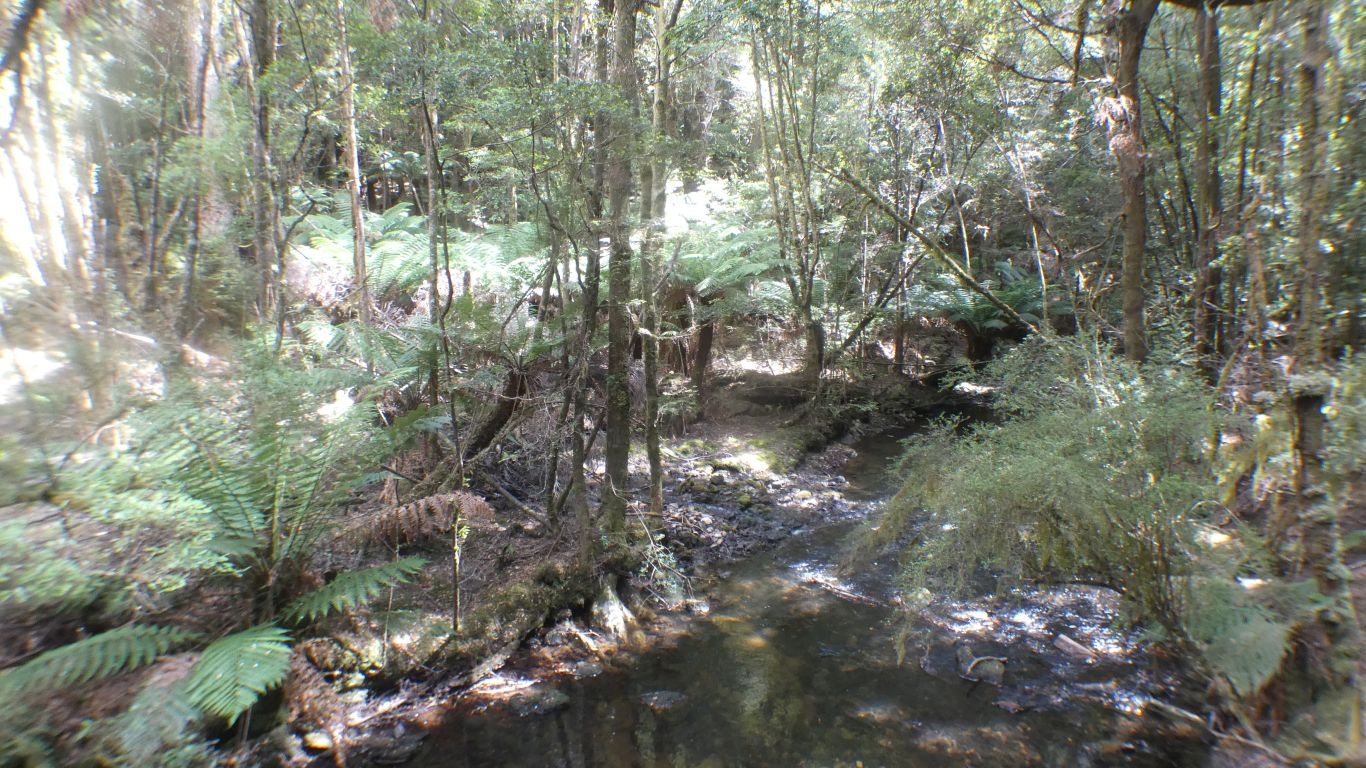 We cross the Kanunnah Bridge and head north a little way. Stopping to explore the Arthur River. | |