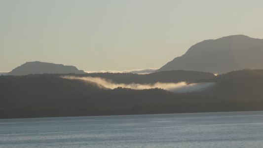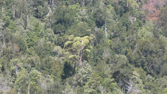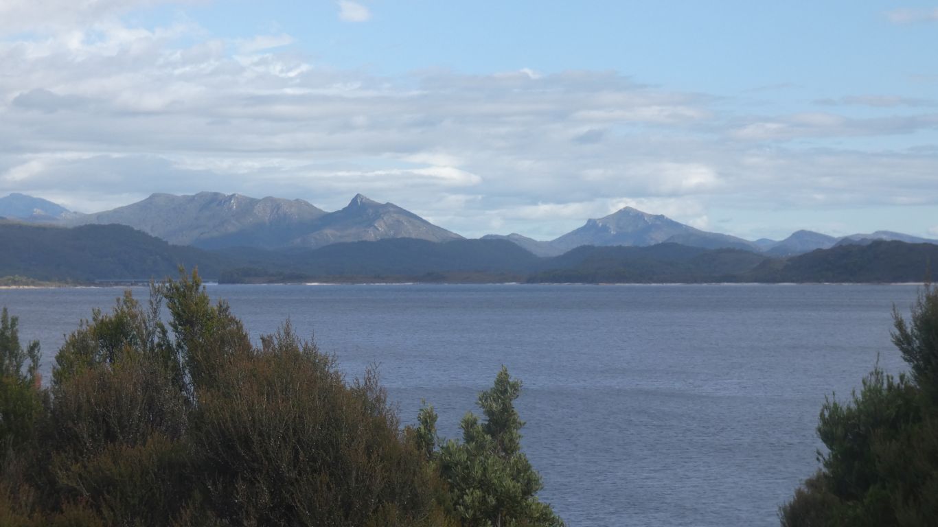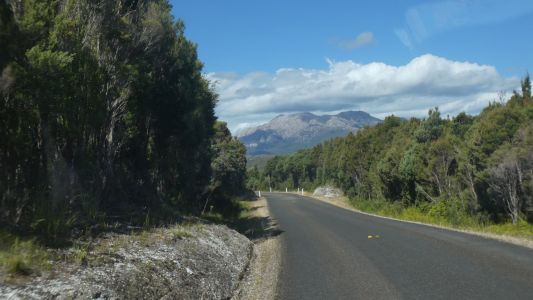 Mt Strahan, that we saw from our last night's camp, is there somewhere. |