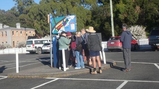the Huon Pine saw mill operating on the wharf. A demonstration of a powered