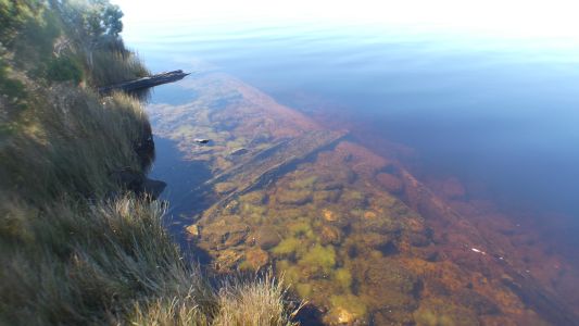 layer of brown tinged fresh water on top of salt water. Not suitable for