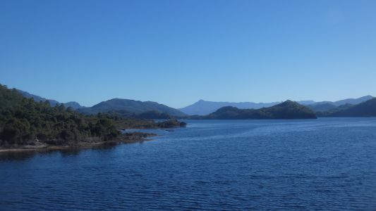 Kelly Basin. MacQuarie Harbour. Sarah Island just beyond. |