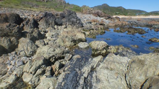 Boulders of Owen Conglomerate carried a few km by a glacier. |