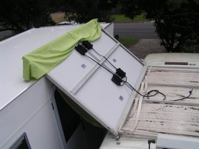 Ali and I managed that with the help of a strategically placed piece of wood. Pity about the grass. It grew back! Not everyone has a motorhome roof on their front lawn. |