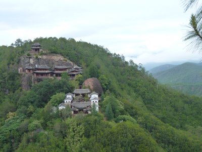 It overlooks Shanxi. It is also the site of some rather fine Buddhist stone carvings. From about 1100 AD as far as we could assertain. No photographs unfortunately. Difficult to describe but very deep carvings in the sandstone. Very fine detail. Also Unique in the inclusion of court scenes and sexual references which are atypical of Buddhist sites. |