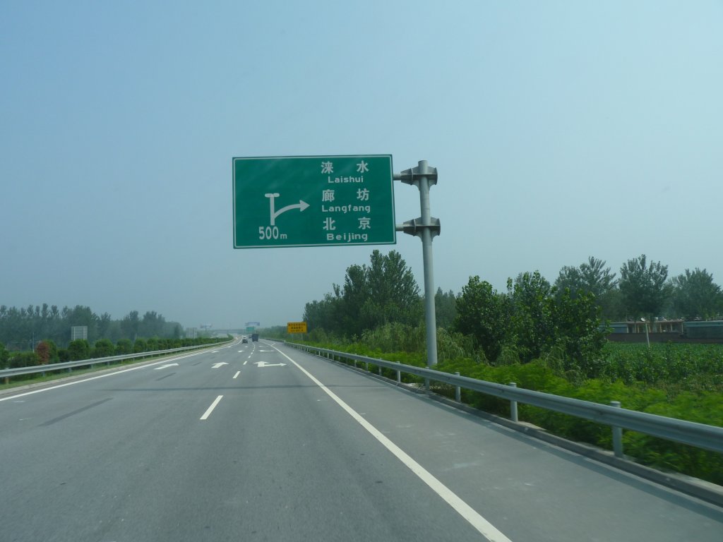 Our original strategy was to find a convenient car park, next to a park, and see what happened. By a chance google we found some references to camping parks in Beijing. It needed some extra chinese googling. A phone call to the one nearest the city found it not yet open but we could stay for free. This is the road from the ring road. |