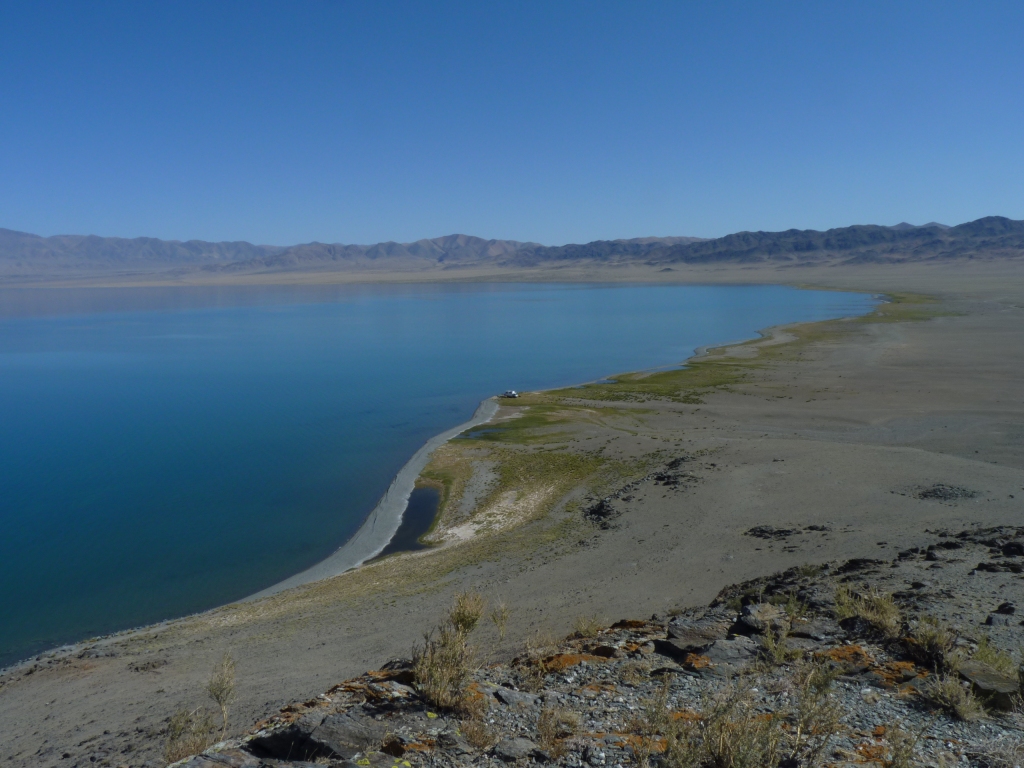 Eventually a sighting of Ureg Nuur, the lake we are aiming