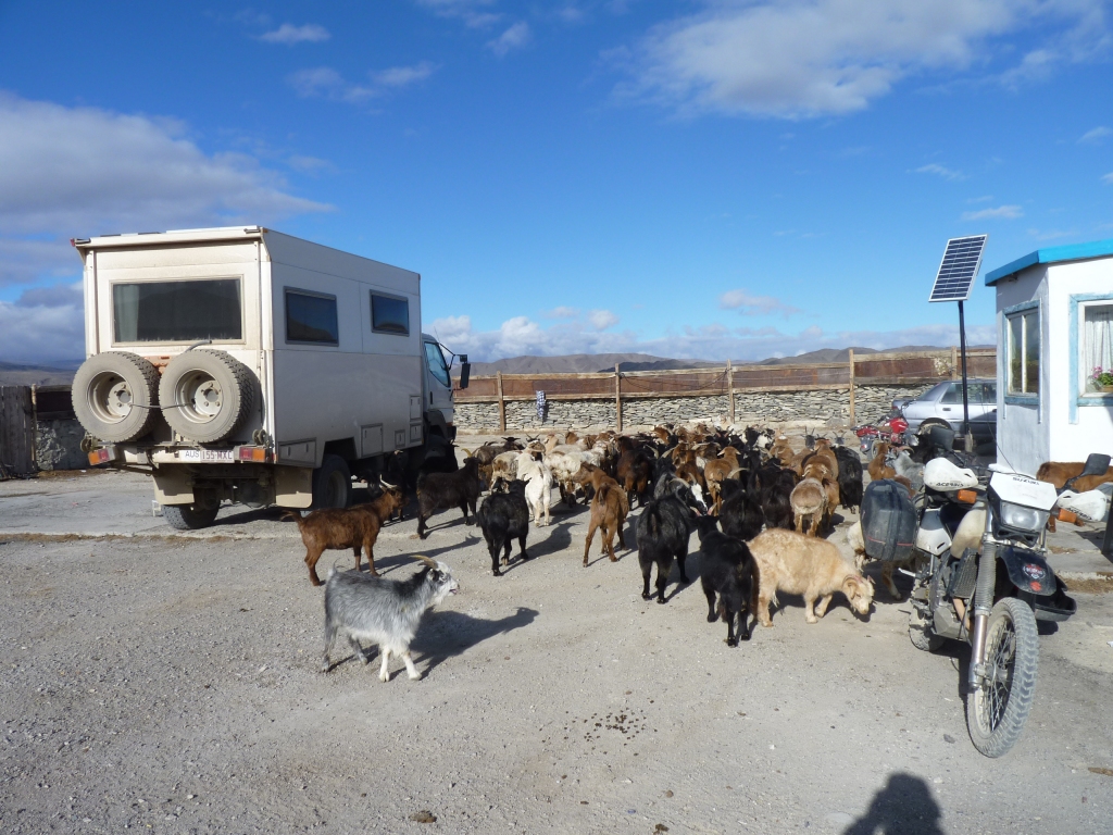 Its not really cold here (never below zero) but Ali is melting the cooking oil in front of one of our heater outlets. We aren't sure about the Mongolian diesel, but its what the locals are using so is probably ok at this altitude and temperatures. Just in case, we've been using one tank with the Mongolian diesel and kept the tank of Chinese "cold weather" diesel from Erenhot for those unforeseen circumstances. We drove about 20km on the Chinese tank full to make sure it works! |