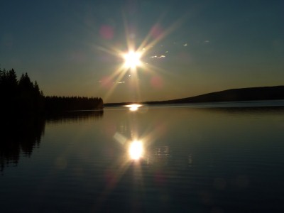 Well, not quite. We are still south of the Arctic Circle. The sun disappeared behind the hill to the right. Had to close the aperture on the camera. Its still very bright at 10pm. |