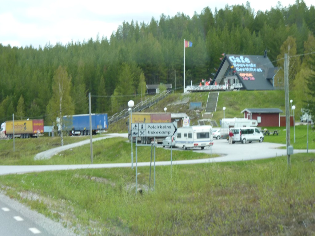 The E45. Known as the Inlandsvagen. This is where we crossed the Arctic Circle. Just south of Jokkmokk. Not sure how they allow for the slow drift of the circle. We suspect close enough is near enough! Since we don't know where it currently is, and didn't check the gps, we just took their word for it. All a bit of an anti climax really, another milestone. |