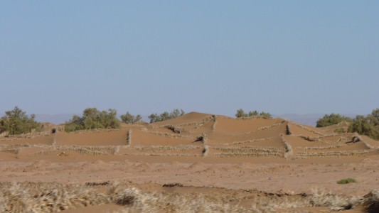 Woven fences to help stabilise the dunes. Now we know what happens to the palm leaves that aren't burned. We've had 5 days rest at Mhamid. |