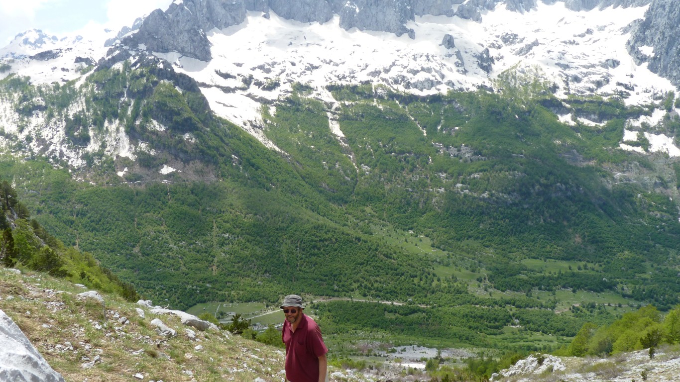 At least I could see where the road to Theth became snowbound. Somewhere around the snowline on the left, and the road goes further up over a pass. We'll walk up that way tomorrow. |