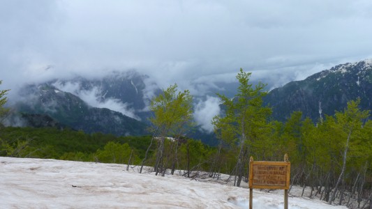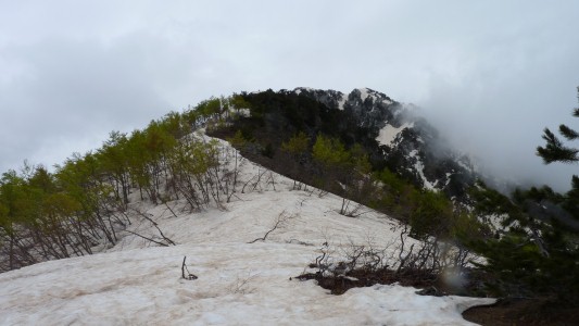Above is snow and some steep rocks.