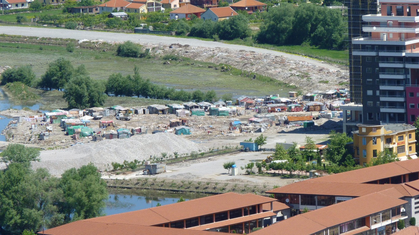 We've seen some strange (to us) greenish coated rocks, perhaps they've been smelting something. Albania has large chromite deposits. We are probably overlooking the derelict ferrochrome smelter at Burrel. Attempts to re-open it apparently failed. This is Komes. Burrel is a few km beyond. |