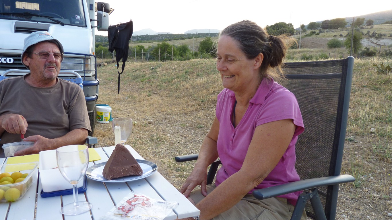 There's still a heap of tar sealing the underneath. The rest took about 5 litres of diesel for each truck. Lake Egirdir provided an opportunity to celebrate birthdays. Ali and Margaret within a couple of days. The wine was Greek, provided by Vasso. |