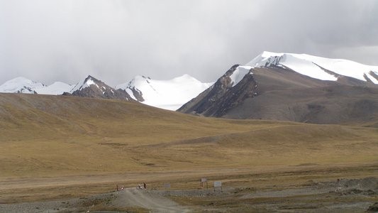 Though the clouds are very high we can see rain falling in places. Much like at Song-Kol. We've lost count of the number of glaciers. |