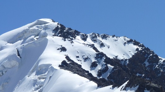We almost turned back a few times before reaching here, after a couple of hours. Nearly at the end (or beginning as its the top) of the moraine was this pimple which we chose to occupy.