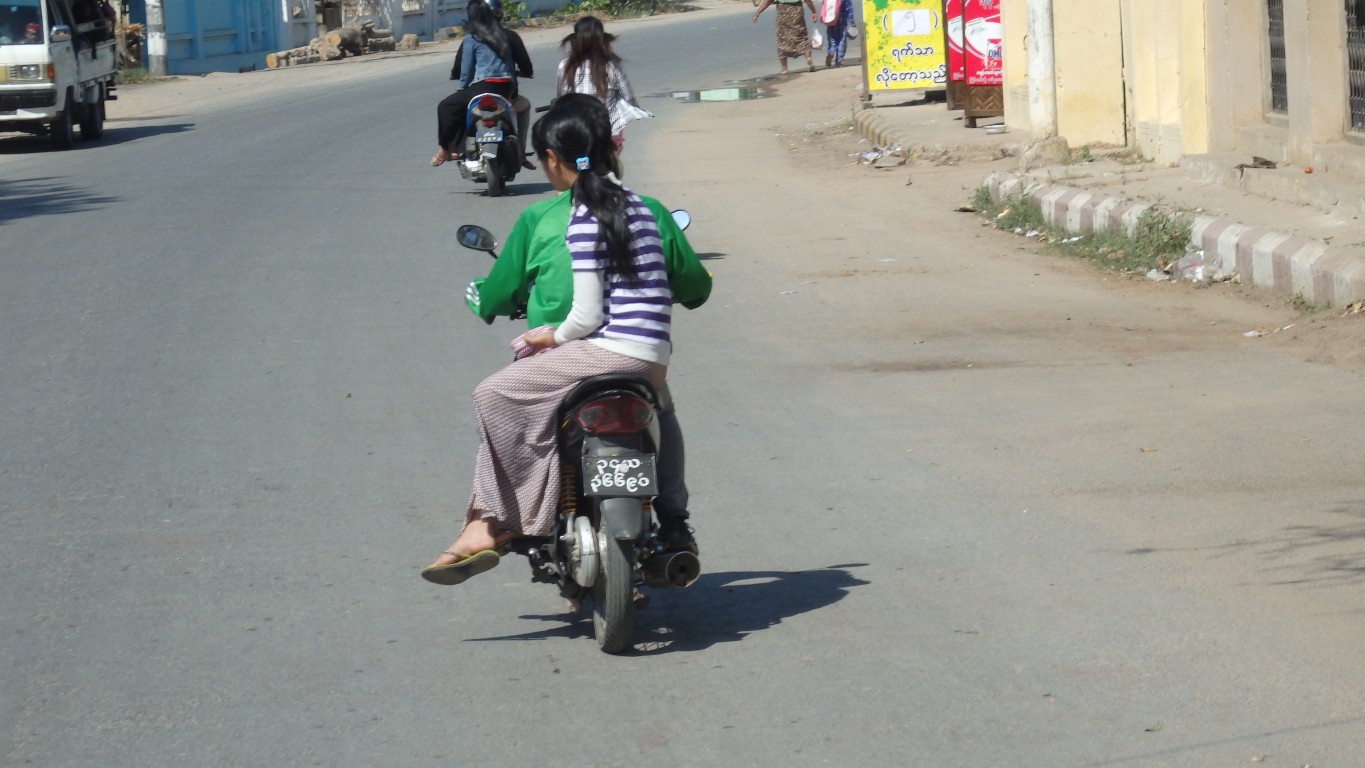 A quick phone call to our Myanmar guide for directions and us 5 stragglers set off. That's Ben, on an Indian Royal Enfield, behind the police. |