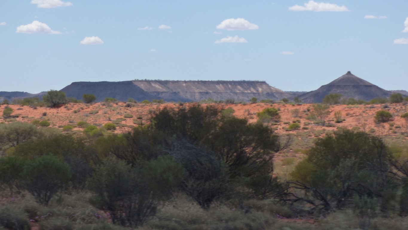 rather than miles. The "milestones" are every 10 km. The roads since Alice have been "rough". With added corrugations. There's probably additional corrugations from all the Finkers. While truck is ok at 70 km/hr, with lowered tyre pressures, we sort of skate over the top, we've been happier at about 40 - 45 km/hr. Less stress on the vehicle and we have a long way to go. |
