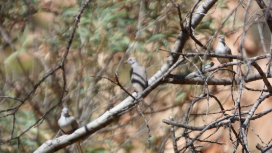Just before the sun sank behind the hills. Next morning we were treated to a dawn chorus. What a difference a bit of water makes in an arid landscape. Sadly, the parrots we saw briefly when we arrived haven't been heard or seen by us since. |
