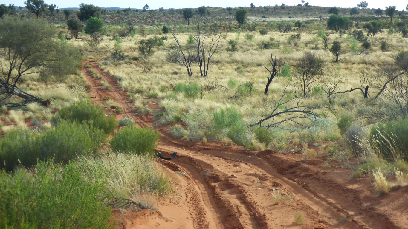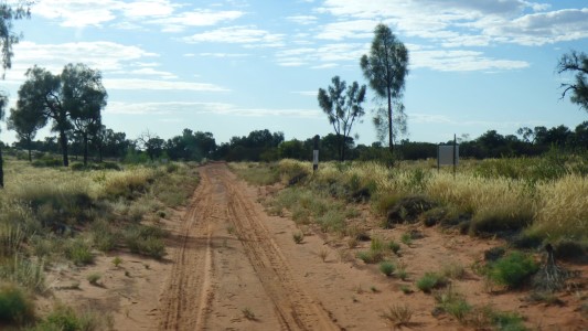 is not too far after the hairpin. We've travelled about 75 km for the day. About 50 km left to Kintore. I'm a wee bit headachy. Driving more carefully, and slowly, and concentrating on every little bump, leaves not much brainpower for enjoying the scenery. Plus, its a warmer day. |