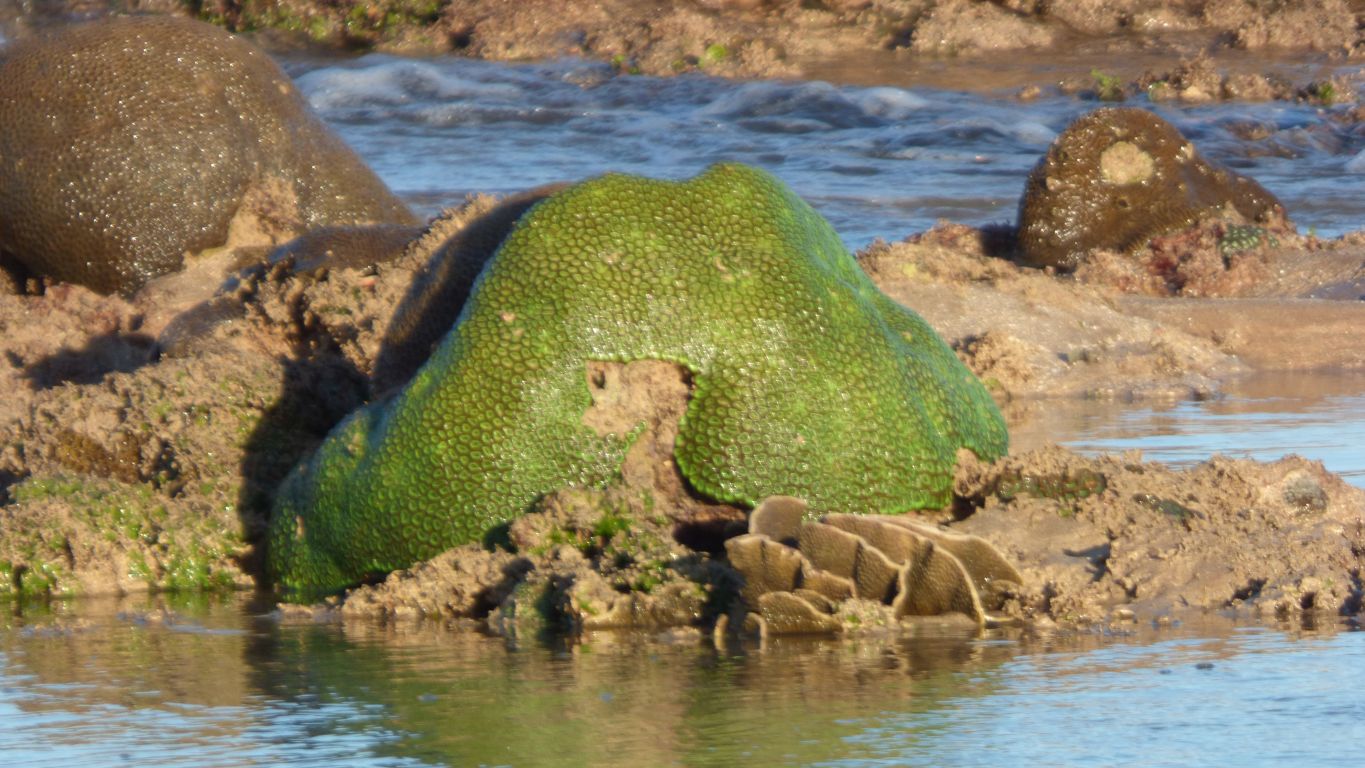 Including large clams. Which seem to make good bait for fishermen who have appeared and precede us to the outer edges of the rocks. |