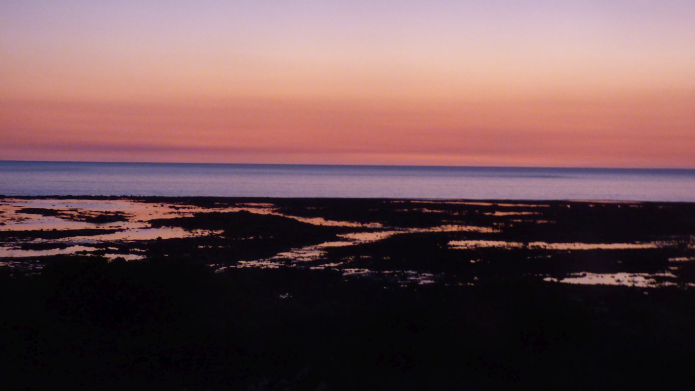 The sun just disappeared tonight. Few clouds. Left to colour the sky and reflect in the rock pools. | |