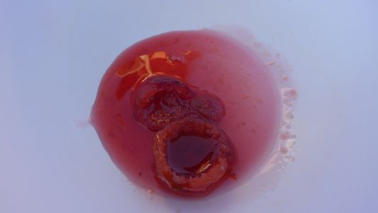 Quandongs for breakfast. Fourteen quandongs, half a cup of sugar, a squirt of lemon juice. Bring to boil and simmer for a while. A bit like plums! High vitamin C, high protein. |