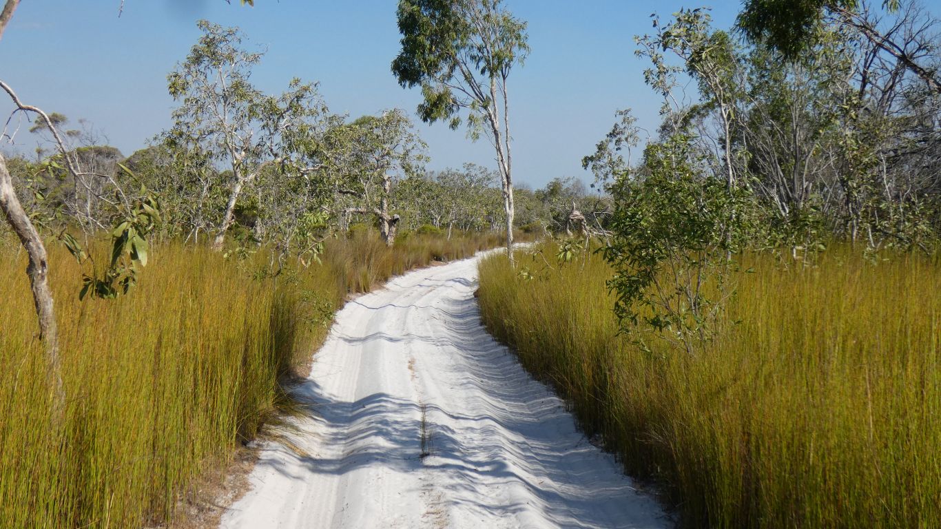 of water. Between the domestic chores, and moving portable solar panels, we listen to the wide variety of birds, while catching an occasional glimpse. We follow the lack of success with fishing at Pennefather with an equal lack of success here. Tomorrow we'll head south, a couple of days to cover about 420km into Oyala Thumotang National Park. With a name like that we have to have a look.