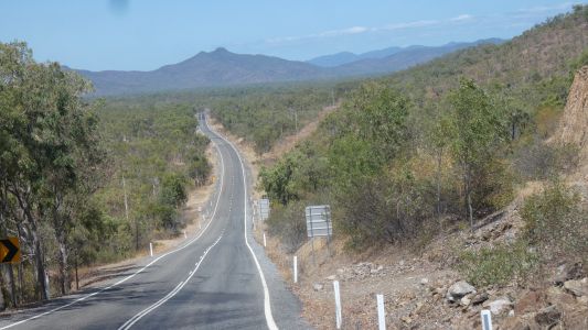 Roadhouse. We can look back, to the north, and see the road and the Lakeland plain. Laura, and Lakefield, are beyond that. The Great Dividing Range, which we are crossing, is to our west (left). |