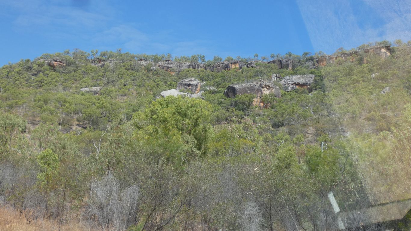 As we drive south it seems there's a flattish area running below the top of the escarpment. Split Rock was about a km back in a similar place. | |