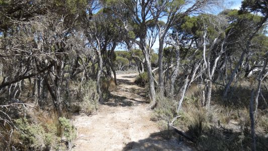 Getting closer to the track on the east side of the lake. Patches of bush with easy to walk through salt. | |