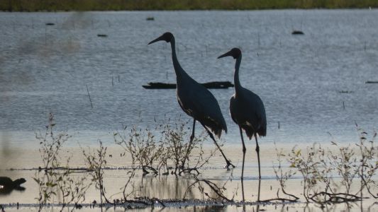 pocket while tying shoelace. Bah humbug. No chance of finding it. But I enjoyed the brolgas. |