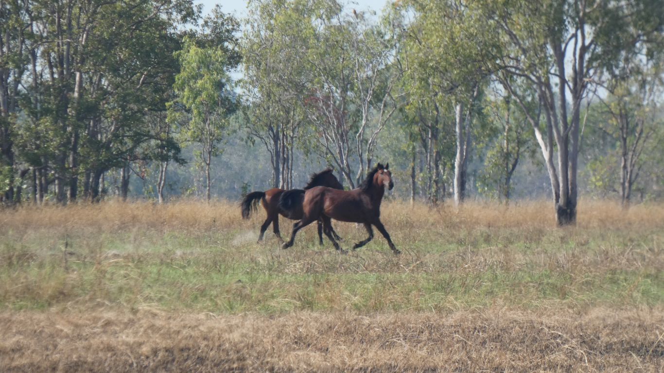 We saw a few brumbies. These two zig-zagged across our path several times until eventually choosing to remain on our right. | |
