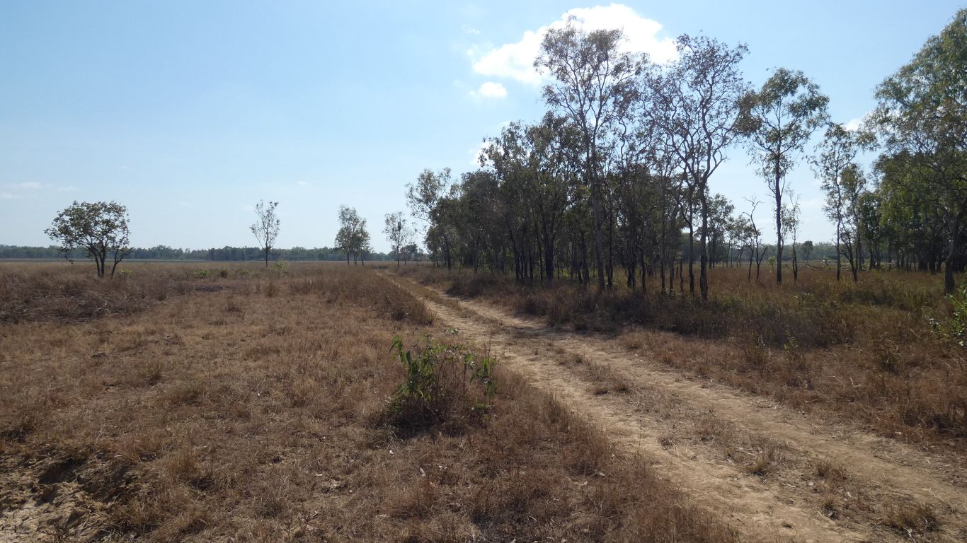 Local knowledge knows about "banana billabong". This is not it. Its a creek feeding the billabong. Had we backtracked about 100m we could have followed the edge to the billabong. Since we only recognised that once we were home and could study satellite and map we decided to cut our losses and walk home. The circuit was about 8km. |