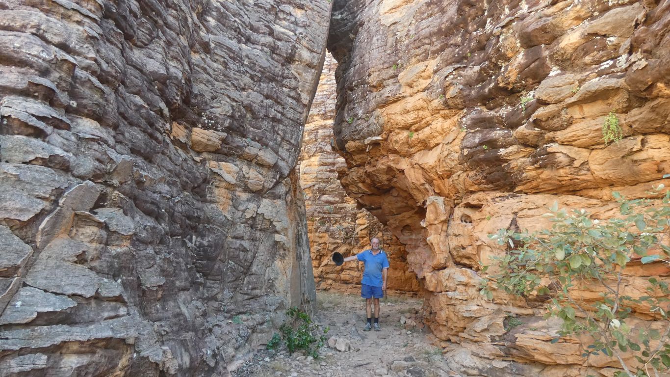 The gravel road was in reasonable condition. 60-70km/hr. A brief detour southwards after joining the Carpentaria Highway. Sealed, but too lazy to pump up tyres as I would need to air down after Borroloola. A small area of sandstone pillars and domes at Caranbirini Conservation Park. |