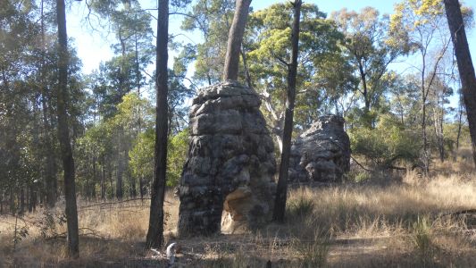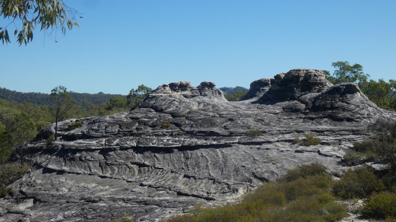 for a panoramic view. We haven't agreed on how many steps .... Its not yet Spring here, we are too early for the homoranthus flowers. A speciality of the area. Looking south. In the general direction of Louisa Creek (and Mitchell Springs). |