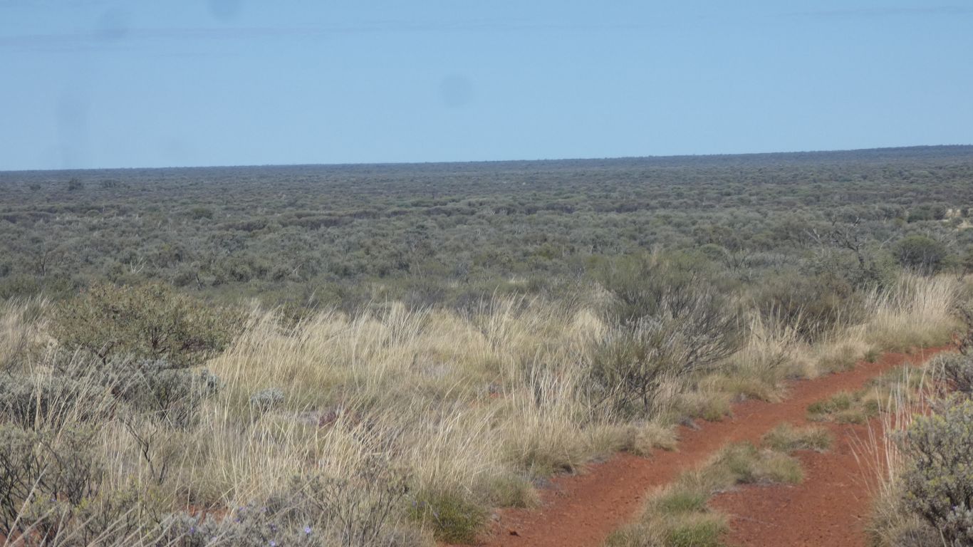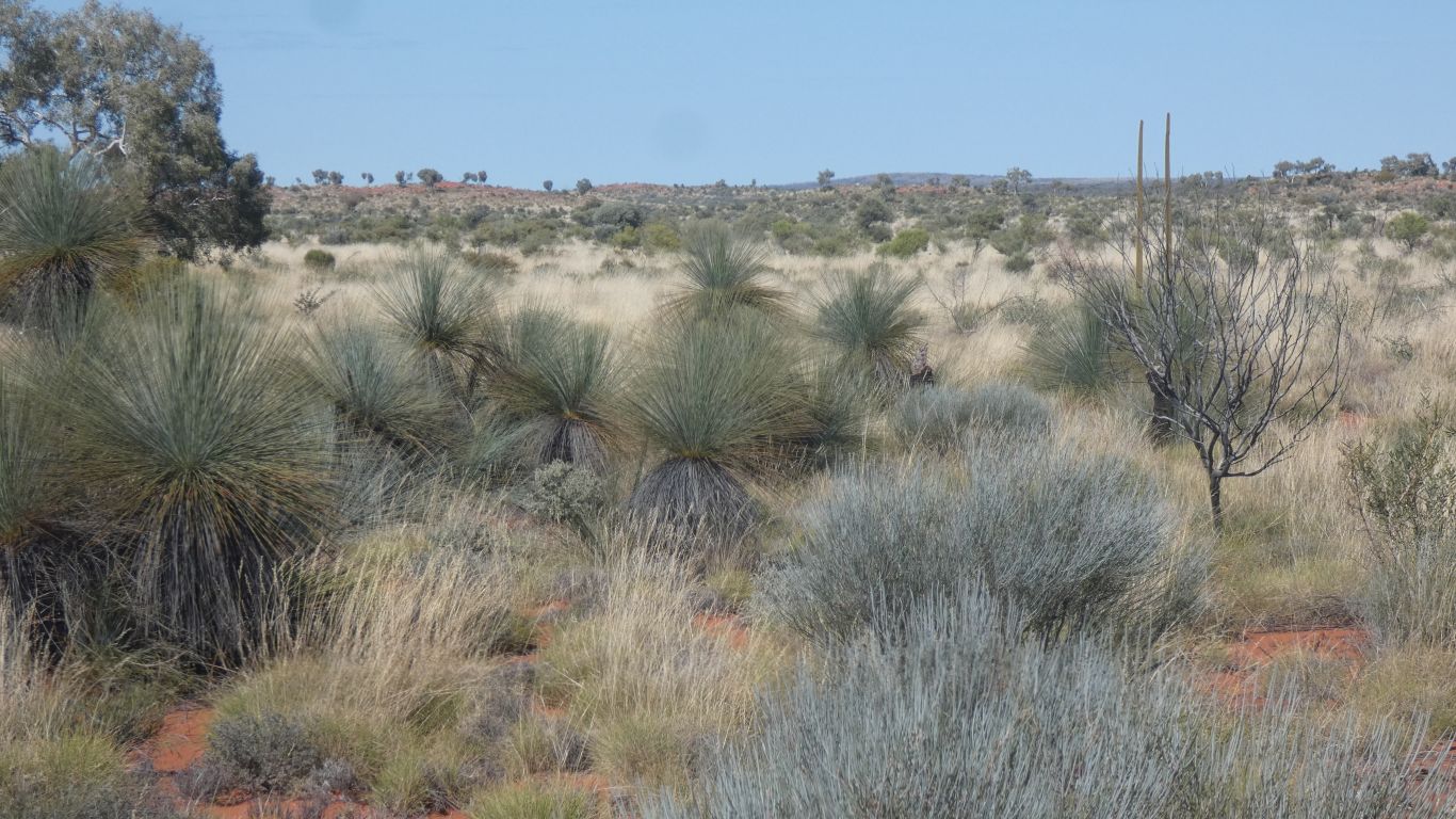 The spinifex has given way to grass. Among the mulga. |