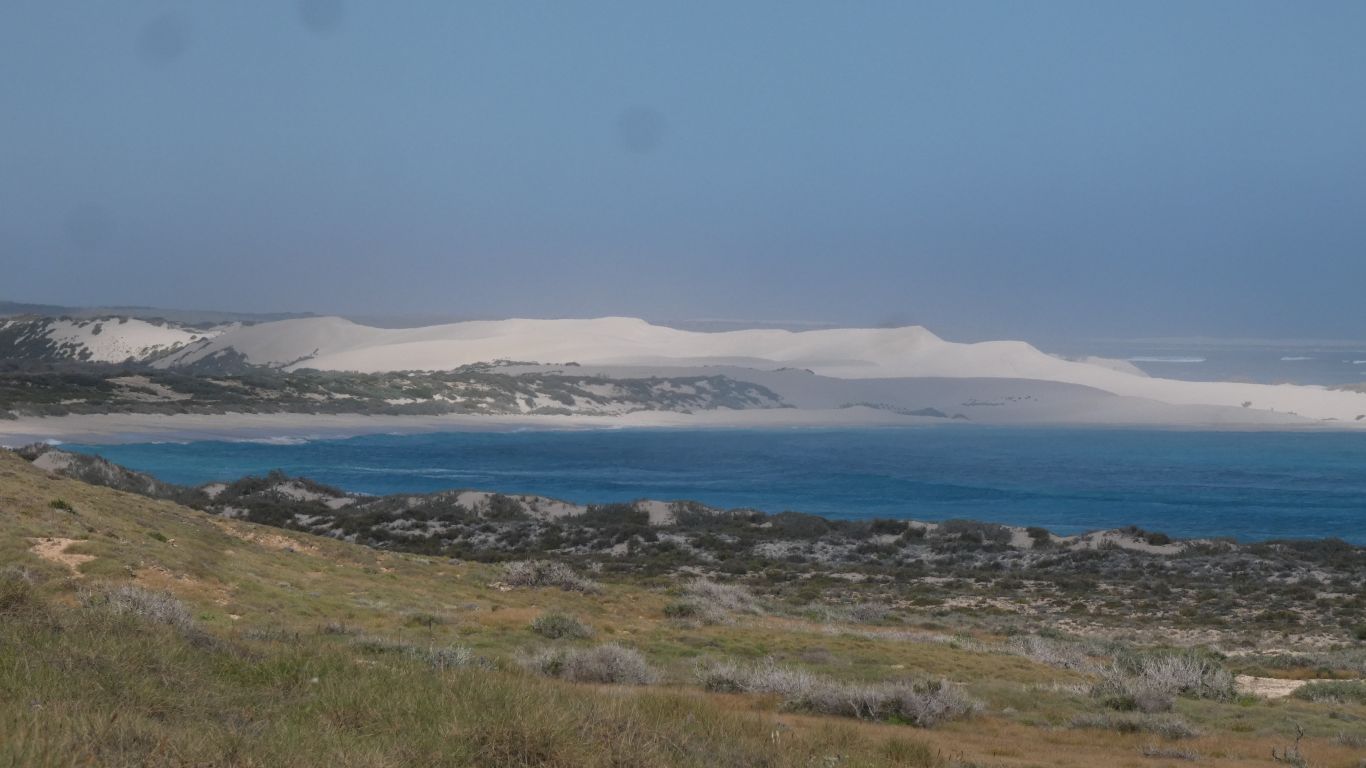 Nearing Gnarraloo. The dunes have been aligned north south, so occasionally we have been between them. | |