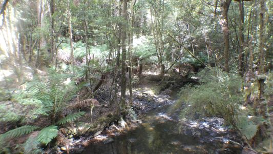 River. There is a description of the tall gum trees, which are susceptible to, and require, fire, with lower down, nearer the river, rainforest species myrtle beech and sassafras which don't. Given time the rainforest will overtake the eucalypts. Unless there is a fire. Blackwoods have a foot in both camps. |