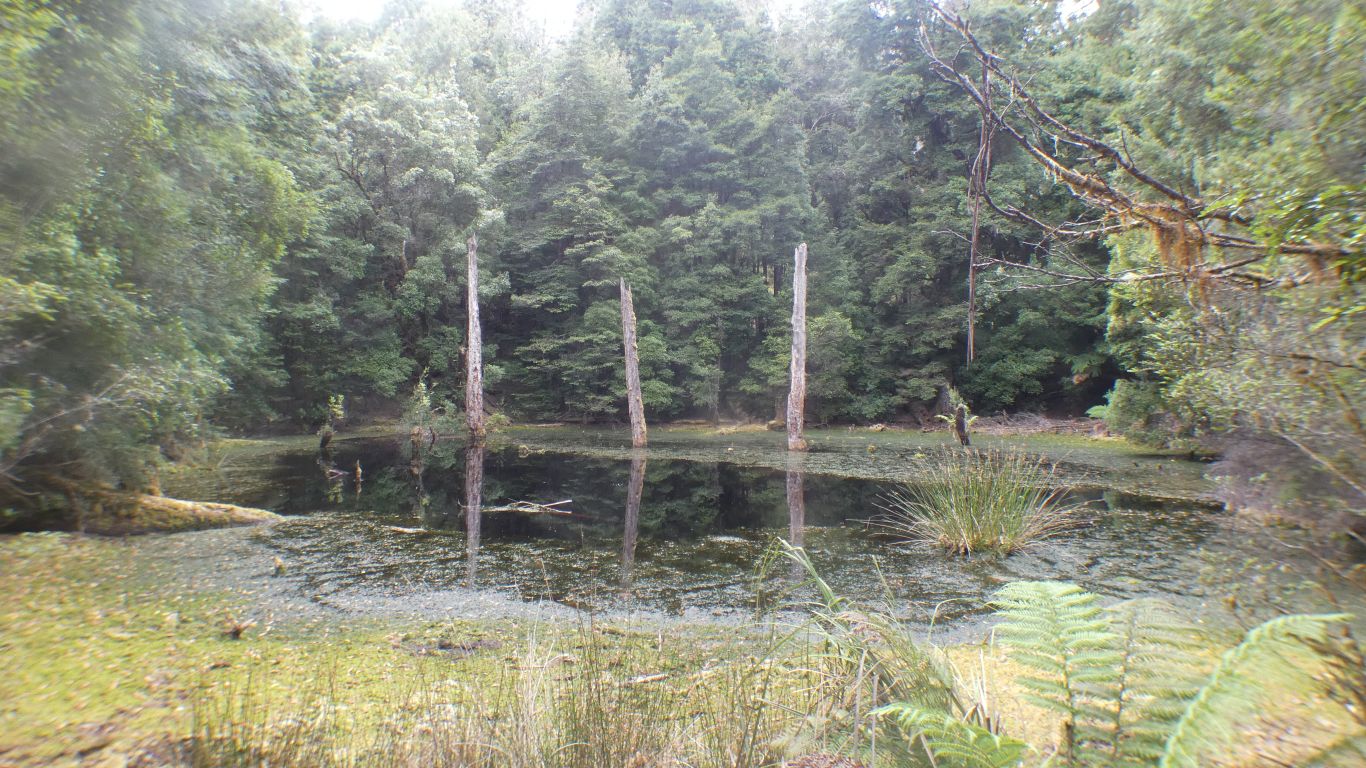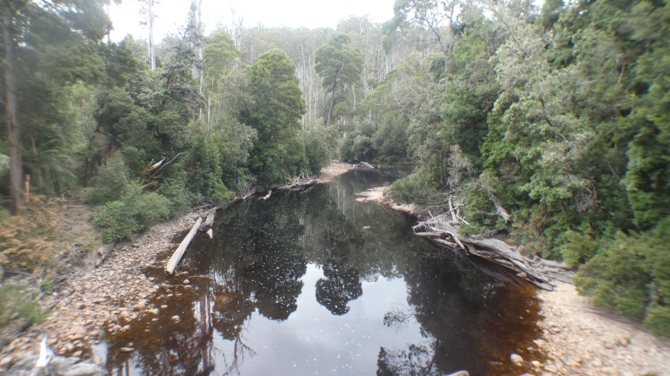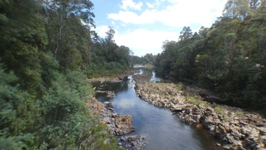 We cross the Kanunnah Bridge and head north a little way. Stopping to explore the Arthur River. | |
