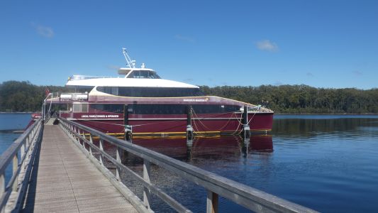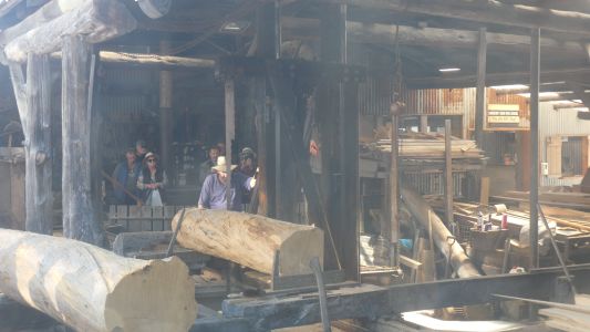 the Huon Pine saw mill operating on the wharf. A demonstration of a powered