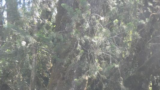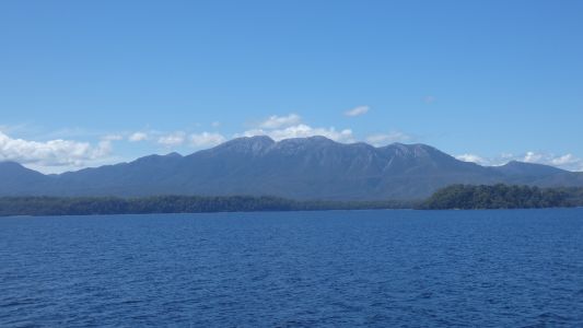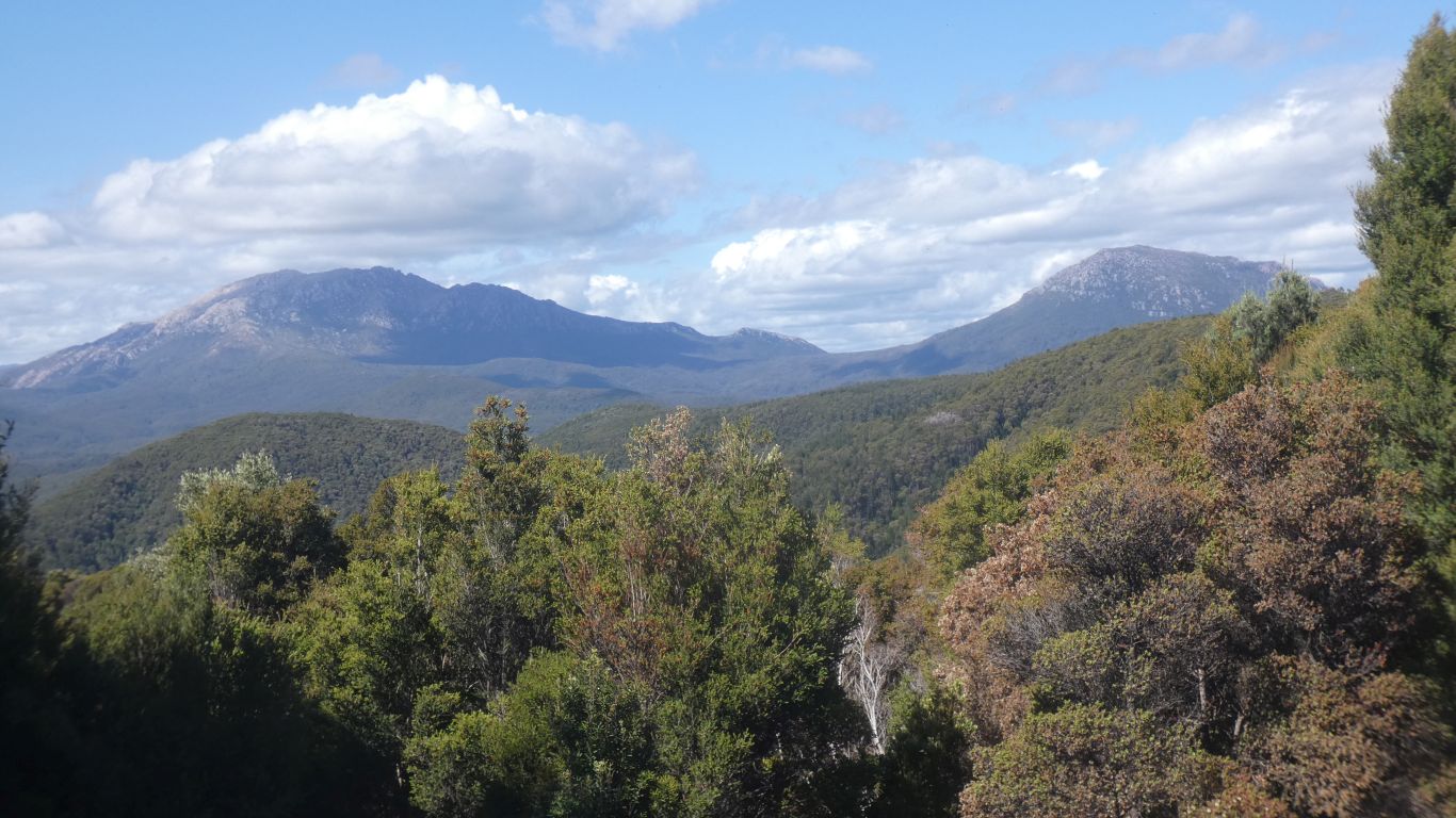 Mt Strahan, that we saw from our last night's camp, is there somewhere. |