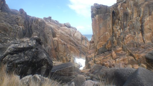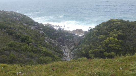 granite, situated atop a sea cliff, on Wheel Bay, about 5km N of Remine. It